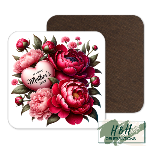 Happy Mother's Day Pink Floral Heart MDF Coaster.