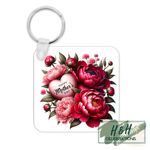 Happy Mother's Day Pink Floral MDF Keyring