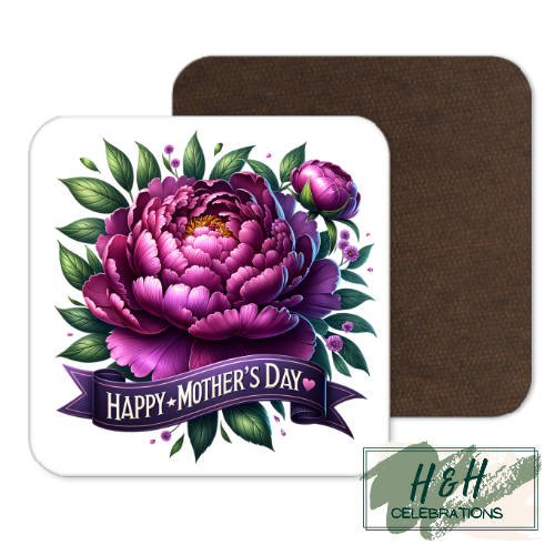 Happy Mother's Day Purple Floral MDF Coaster.