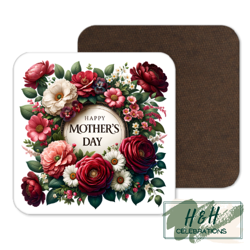Happy Mother's Day Red & White Floral MDF Coaster.