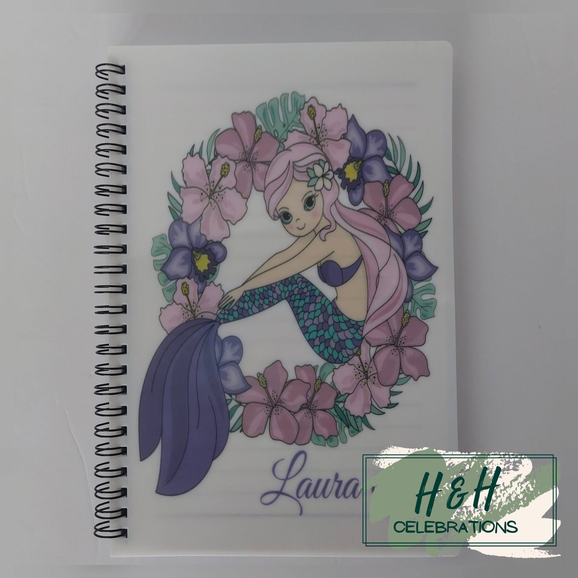 Mermaid & Floral Boarder Personalised A5 Lined Notepad
