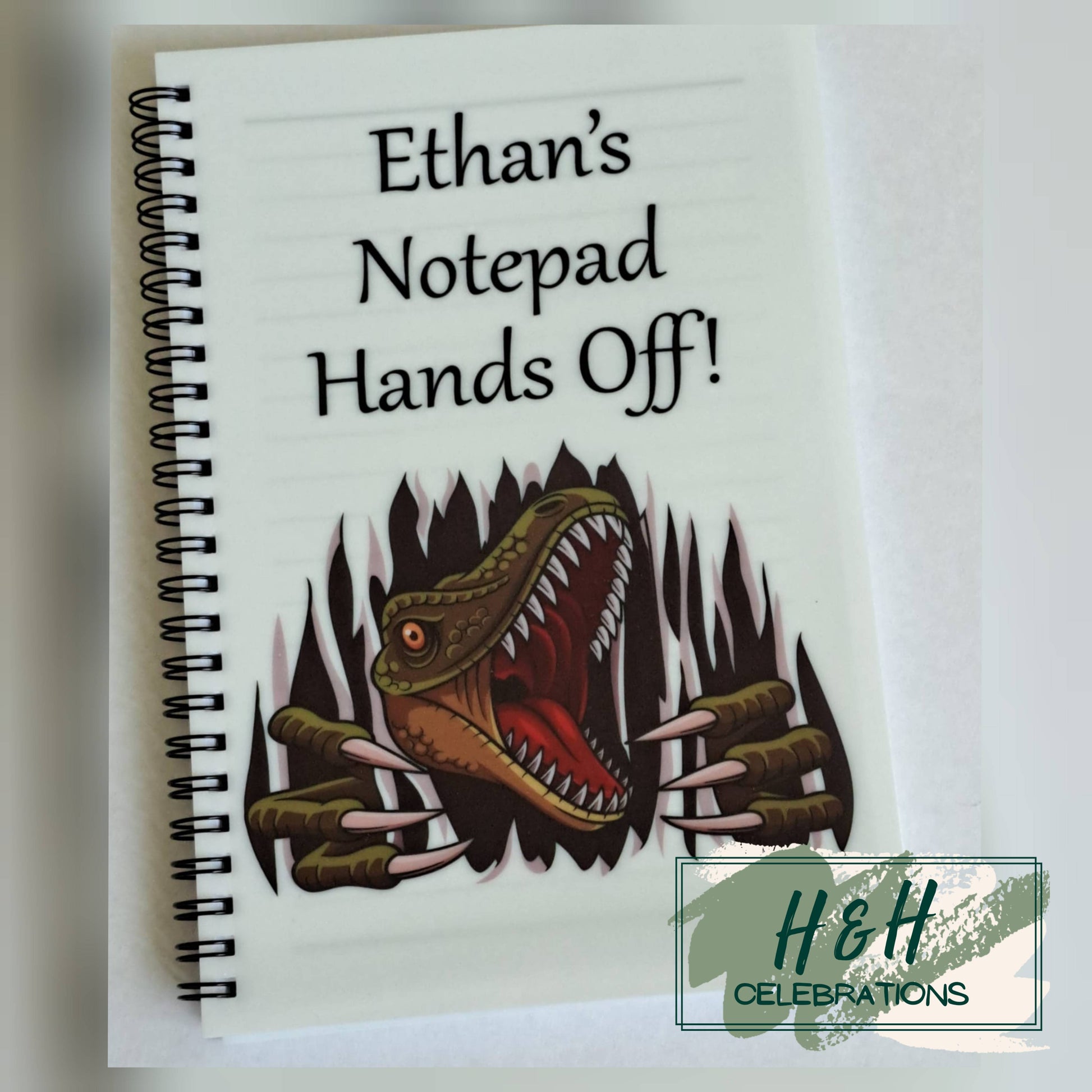 Personalised Dinosaur Hands Off! A5 Lined Notepad