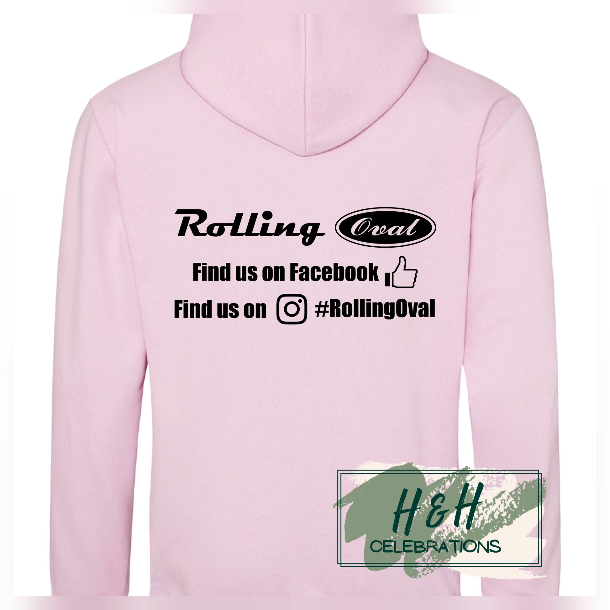 Our standard rep design pullover hoodie featuring the clubs logo and social media wording on the back.