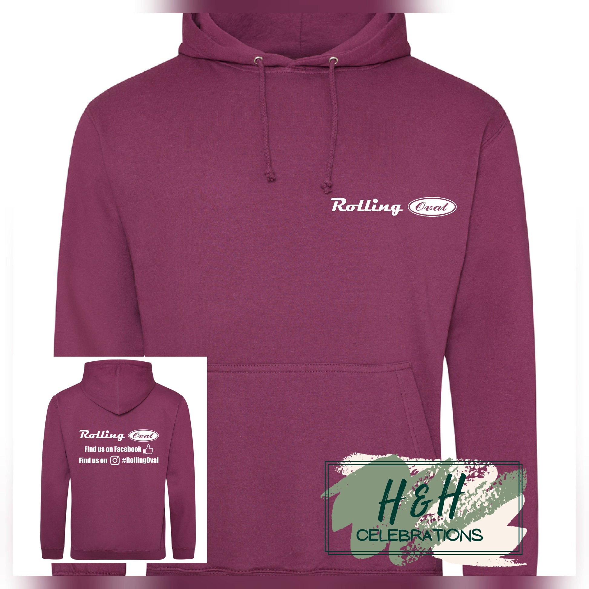 Our standard rep design pullover hoodie featuring the clubs logo and social media wording on the back.