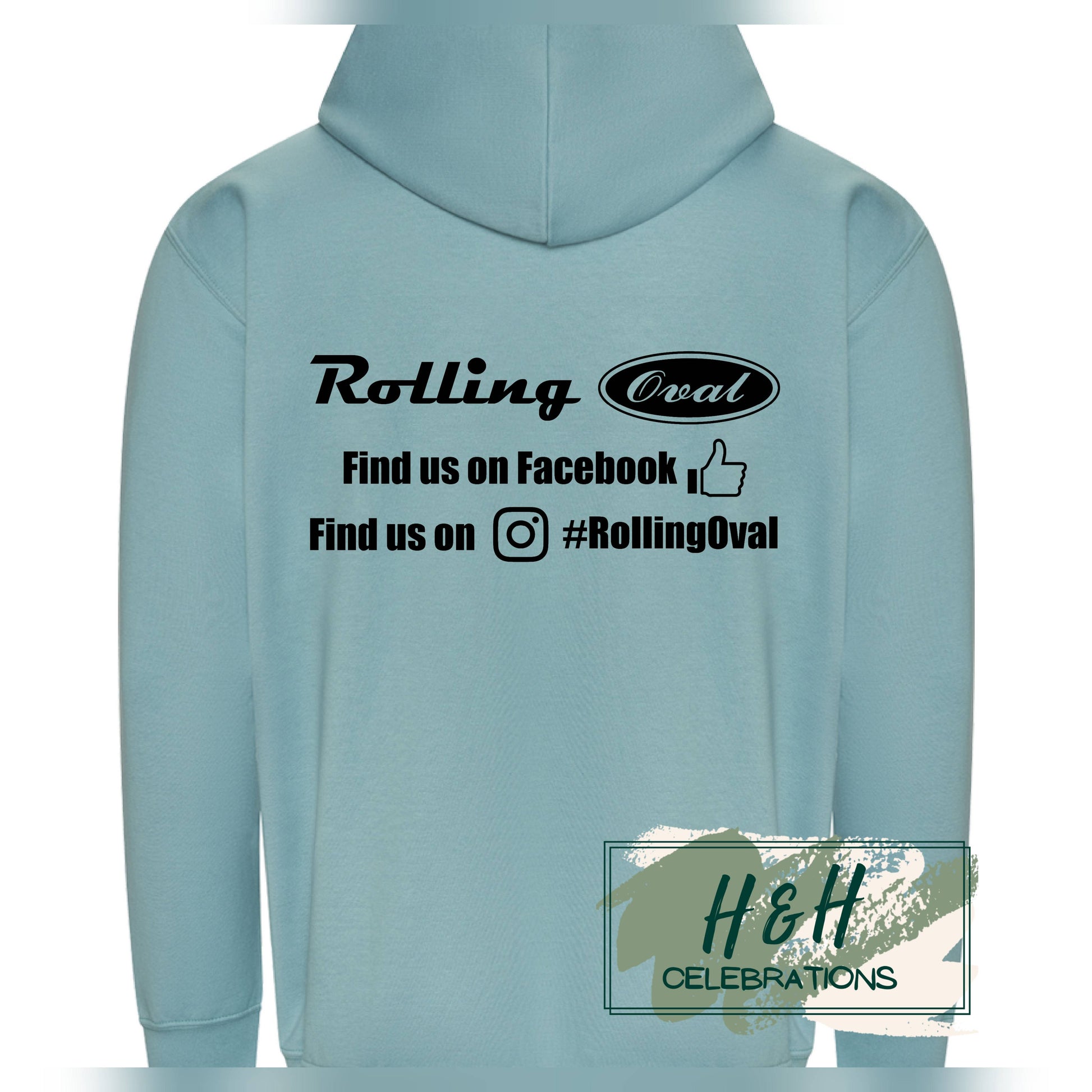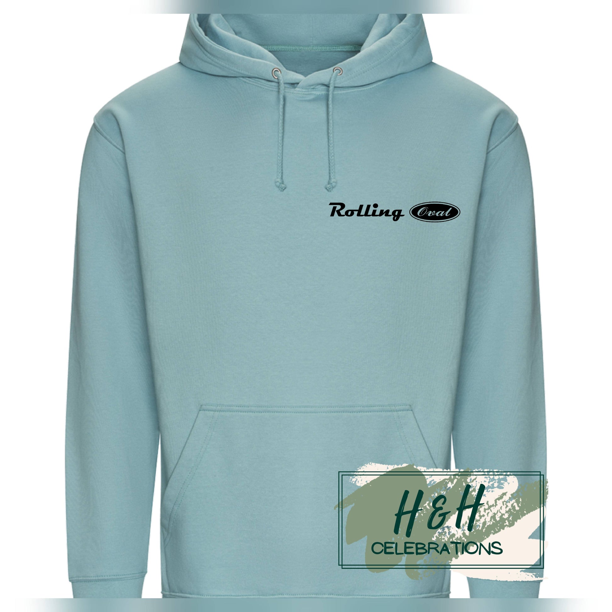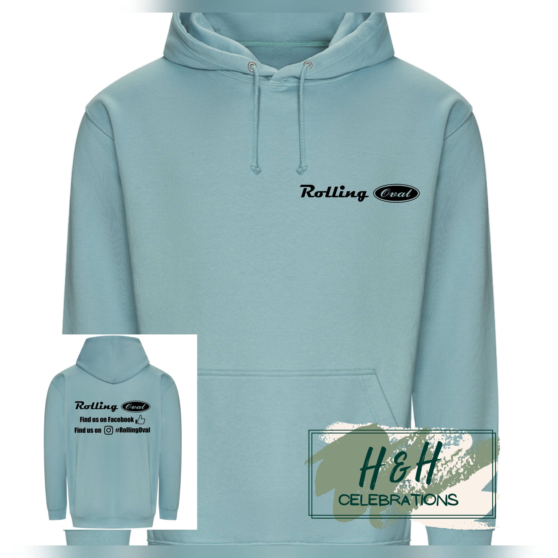 Our standard rep design pullover hoodie featuring the clubs logo and social media wording on the back.