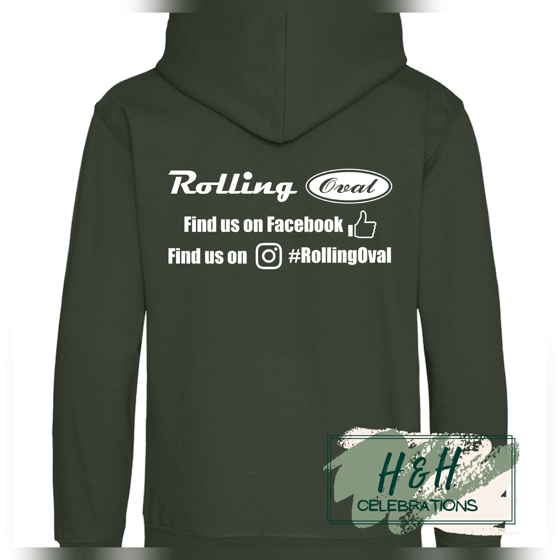 Our standard rep design pullover hoodie featuring the clubs logo and social media wording on the back.