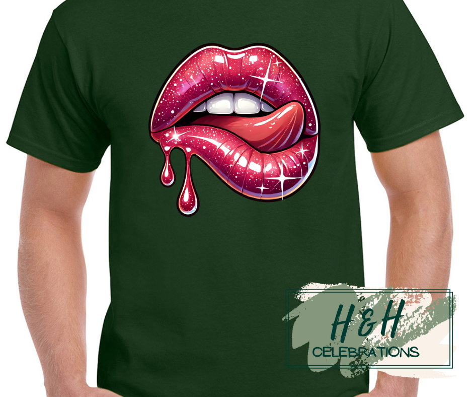 Elevate your everyday wardrobe with this striking women's t-shirt, showcasing a captivating sparkling lips design that catches the light beautifully. The generous sparkle detailing creates eye-catching visual interest, while the playful lip-licking motif adds personality and charm to your look. Crafted for comfort and style, this versatile piece works seamlessly for casual outings, social gatherings, or relaxed weekends. Available in 15 colour options, you can select the perfect shade to match your personal aesthetic and existing collection. A contemporary essential that transforms a simple tee into a statement piece.
