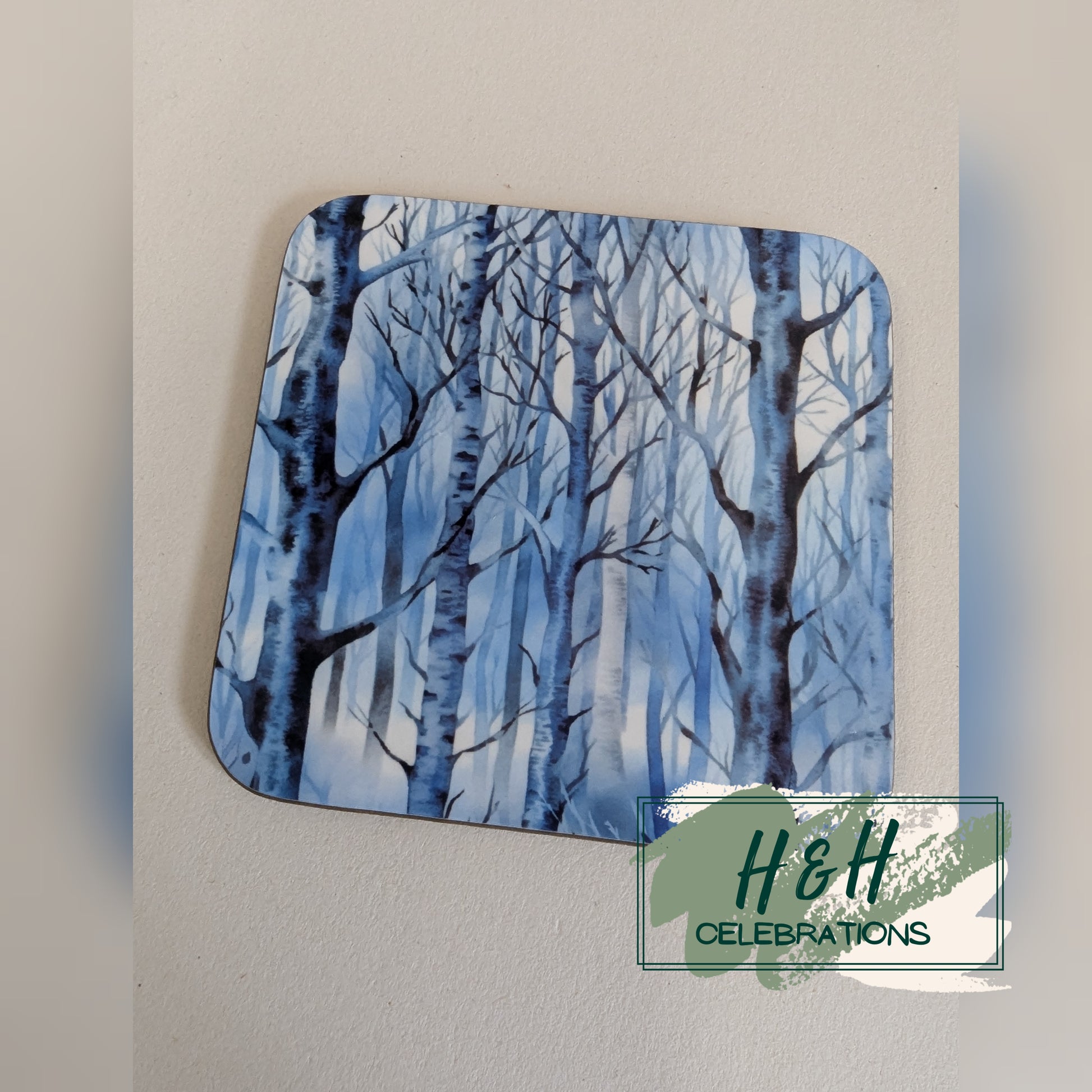 Winter Woodlands Blue And White Print MDF Coaster - Design 1