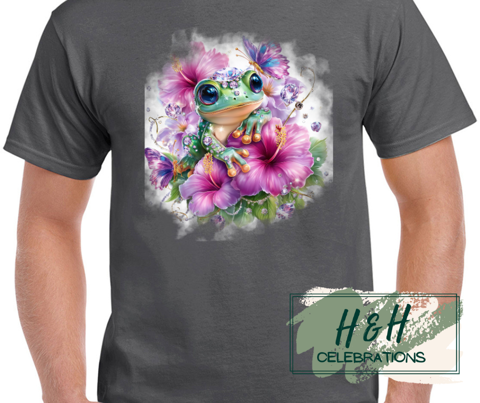 Embrace the whimsical charm of the Jewelled Summer Frog T-shirt!