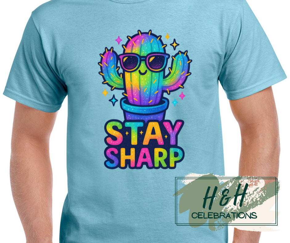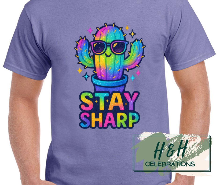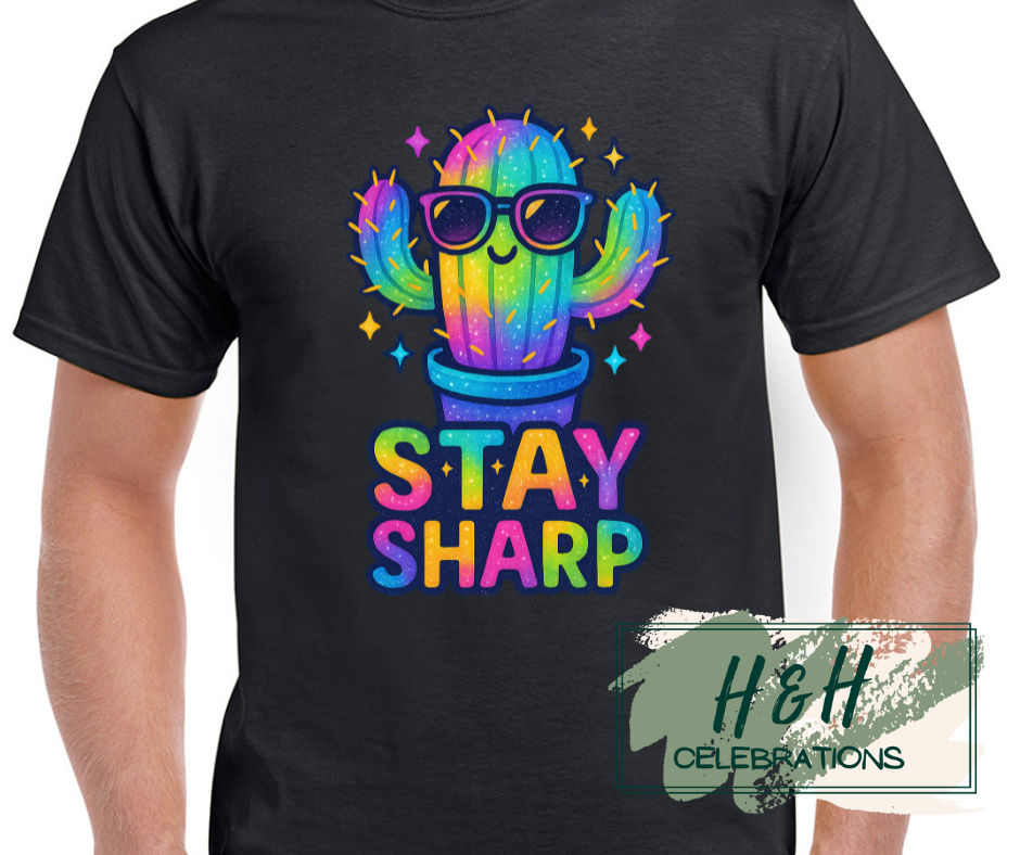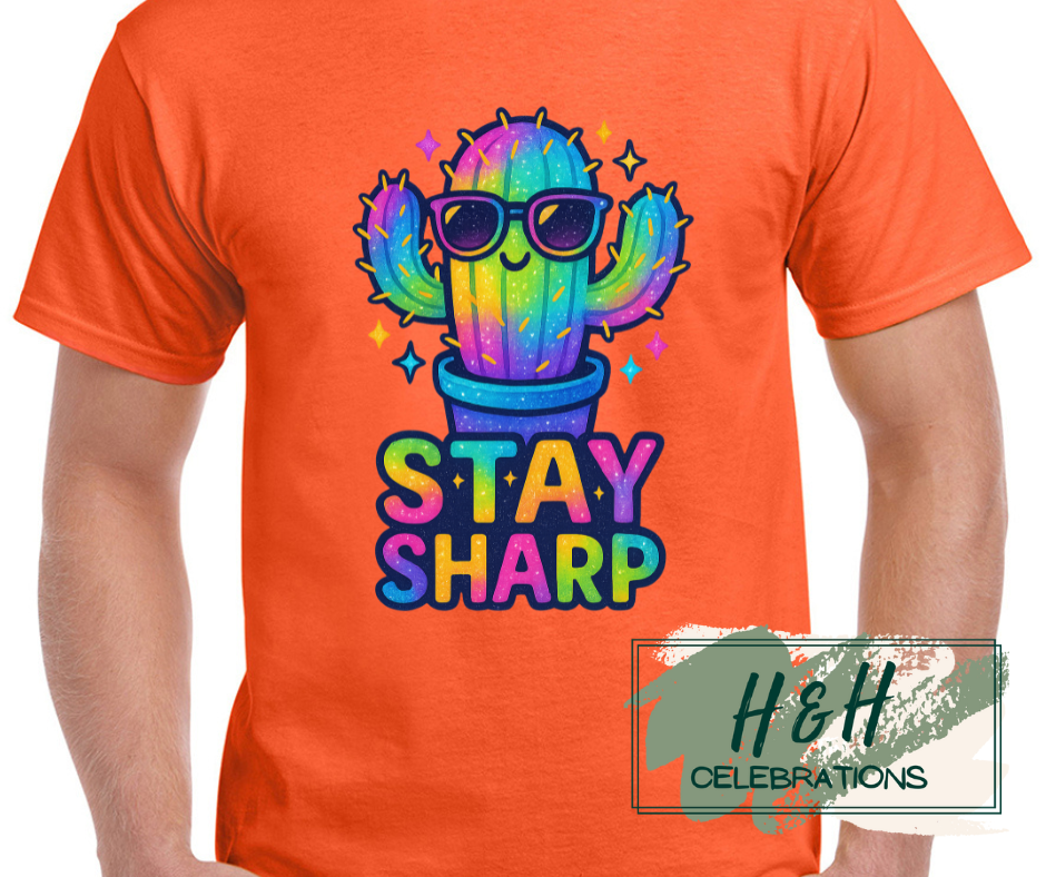 Who it's for: The Women's Stay Sharp T-Shirt is for the woman who loves to make a statement with her fashion choices. If you're tired of blend-in basics and crave something that reflects your vibrant, adventurous personality, this is the top for you.
