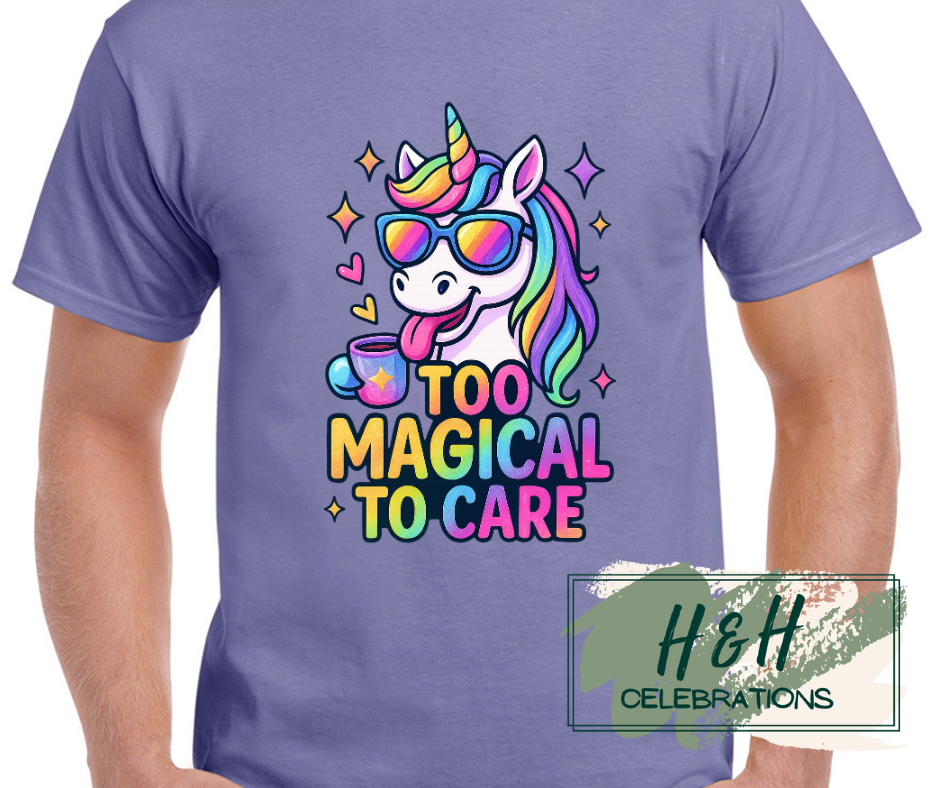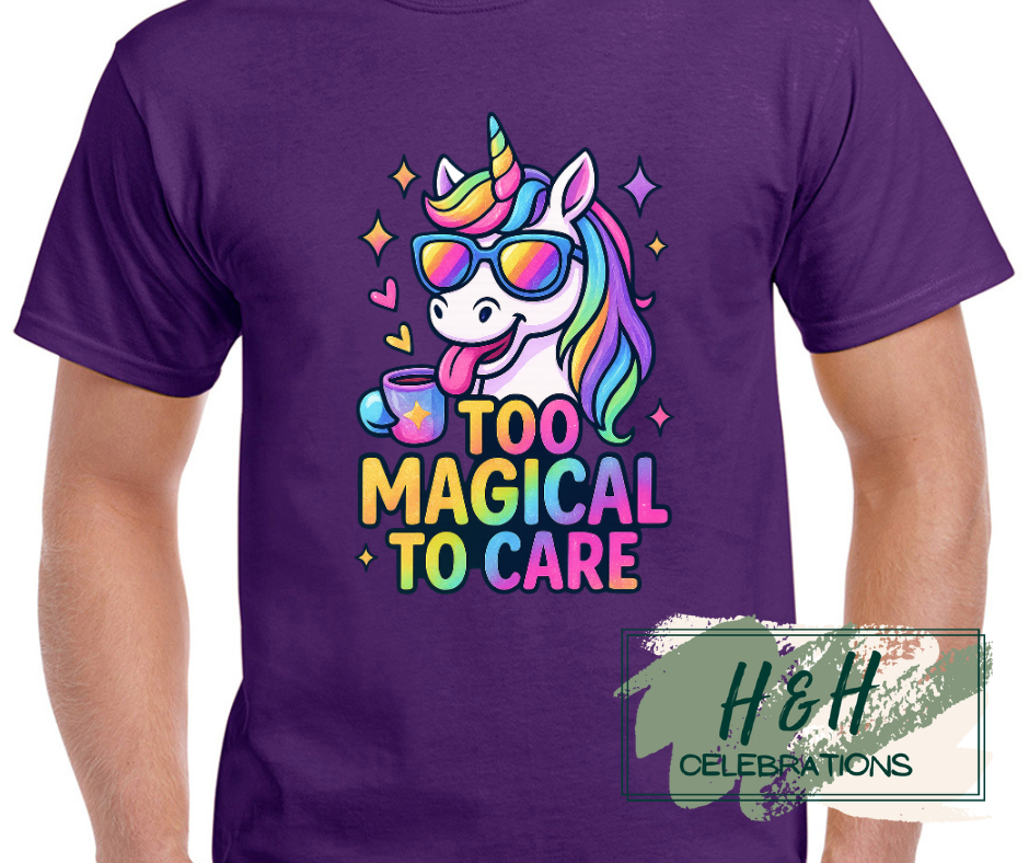 Unleash your inner unicorn with the Women's Too Magical to Care T-Shirt!